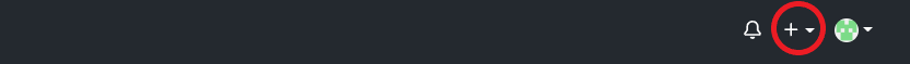깃허브 네비바 상단 우측에 플러스 버튼 (빨간 동그라미) 클릭