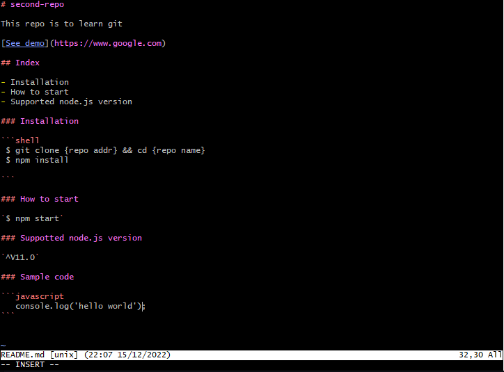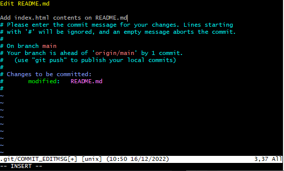-insert 모드 (파일 수정모드)로 해 수정한 부분에 대해서 작성해준다